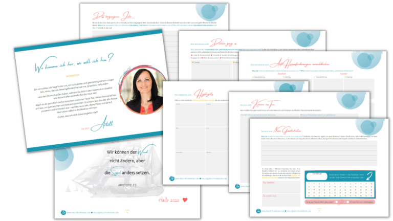 Weil es mir sehr gut tut, am Jahresende in mich zu gehen, und ich immer wieder erlebe, dass ein Jahresrückblick und eine Neuausrichtung auch anderen Menschen hilft, in sich zu spüren und die Verbindung zu sich und ihrem Herzen aufzunehmen, habe ich für dich ein Workbook mit vielen Reflexionsfragen erarbeitet.